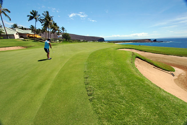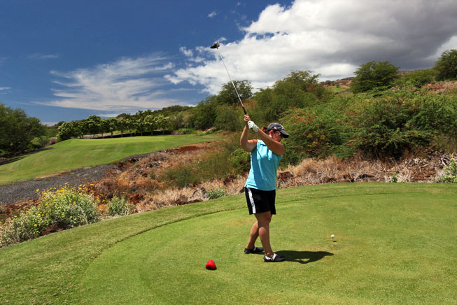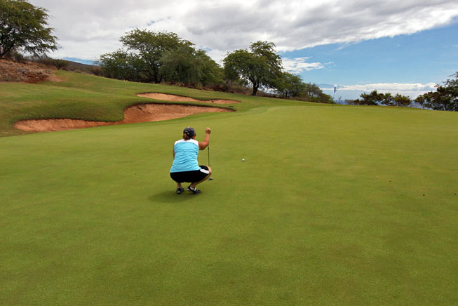 Fast-forward to my first trip to Hawaii, the beautiful island of Lana’i, which boasts two world-class golf courses – the Four Seasons Resorts Challenge at Manele and the Experience at Koele. As Barbara’s virtual assistant and traveling companion I was offered the opportunity to play a round at one of the courses. I chose the Challenge at Manele mainly for the spectacular ocean views and fantastic photo opportunities for Barbara, who planned to ride along.